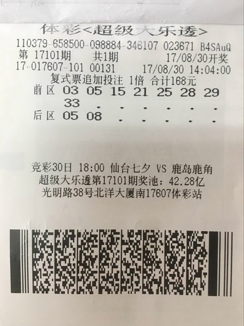 2017年8月份对于威海彩民来说无疑是一个丰收喜庆的月份,30日晚体彩大乐透第17101期开奖,威海同时中出2注一等奖。威海光明路17607投注站的彩民乔先生(化姓)喜揽其中一注。近日,中奖彩民乔先生(化姓)凭借一张168元的复式追加票到体彩中心领取了共计8838449元的奖金! 近日,中奖彩民乔先生现身体彩中心办理了兑奖手续。据乔先生介绍,他来自云南,是来山东旅游的,已经走过了山东很多个城市,最后来到威海。“我呀,是体彩的老彩民了,在家的时候就几乎期期不落的购买大乐透,这次出来旅游可不能耽误啊,可以说我是玩到哪儿买到哪儿。”8月30日是大乐透开奖日,午饭过后,乔先生来到饭店附近的17607投注站,经过仔细筛选、认真分析后,得出一组复式号码并进行了投注。乔先生说,当时还和站长开玩笑说今天感觉很好,估计要中大奖,得进行追加投注。没想到竟然梦想成真,真的凭借自己独到的眼光、果断的决定不仅中得大奖还凭借追加投注,比同期羊亭彩民中出的一等奖多中得330万元。 谈起中奖感受时,乔先生得意的说到:“肯定高兴啊,买大乐透好多年了,虽然也不是第一次中奖,但是这么大的奖是第一次。刚开始接触大乐透不太懂,就直接机选投注,随着时间的推移,对这个玩法也越来越熟悉,就开始自己选号,平时也经常和其他彩民一起研究讨论,也算是自己琢磨出一点点经验。”乔先生说,这次能中得这么高的奖金,多亏了追加投注,能让大奖变的更大,我觉得这钱花的非常值,以后买大乐透一定要追加。 办理完兑奖手续后,问到乔先生有没有什么技巧时,乔先生说:“哪有什么技巧啊,看准就买,坚持买!你看我就是坚持每期必买大乐透,走到哪里买到哪里,一般每期都花个百八十的,如果哪天感觉比较好的话,就会投的稍微多一点。一定要保持个健康的心态,这样这幸运才会降临到你的身上。” 目前,复式追加投注已经成为彩民购买大乐透的主流方式,这样极大提高了奖金成色,还能够以小投入冲击更大的奖项。如果您也想试试,快参与进来吧,借着本次大奖的好运气来赢得属于你的大奖。