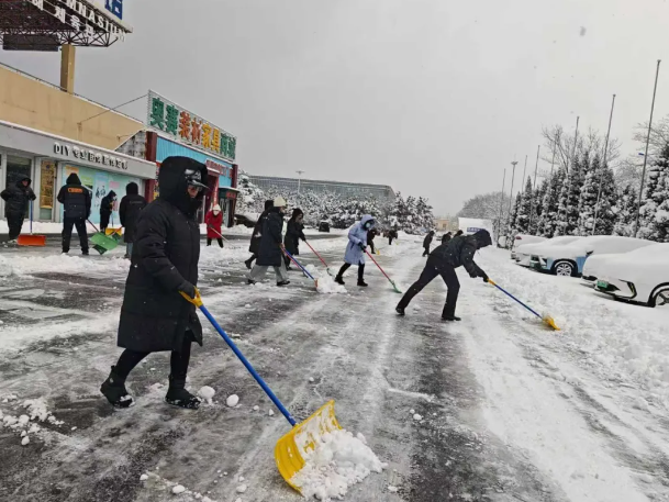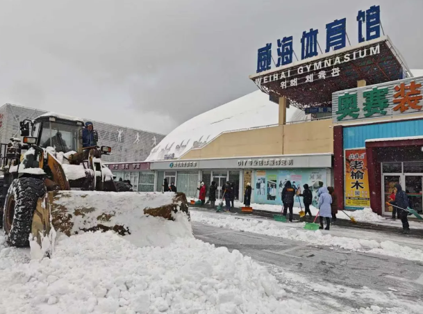 1月11日,面对威海市今年首场强降雪天气,市体育服务中心迅速响应,第一时间组织全体职工组成除雪队伍,及时清扫体育场馆辖区主干道路、健身广场、各停车场出入口以及场馆建筑门前积雪,最大程度减少降雪对市民群众出行及日常健身的影响,全力保障道路通行安全畅通。